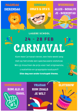 In de week van 24 tot en met 28 februari vieren we carnaval op school.